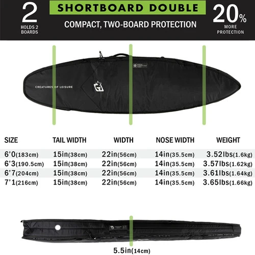 DT2.0 Double Shortboard Travel Cover | Creatures of Leisure | Highest Protection | Fits 2 Boards