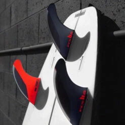 F8 Blackstix 3.0 thruster surfboard fin set. This is one of Futures Fins most balanced templates, and the largest in our Blackstix lineup. The springy flex pattern of the Blackstix construction combined with the V2 Foil give this fin a lively feel, making it an ideal choice for generating speed and increased drive in smaller waves while the thicker tip provides hold when you’re on rail.
