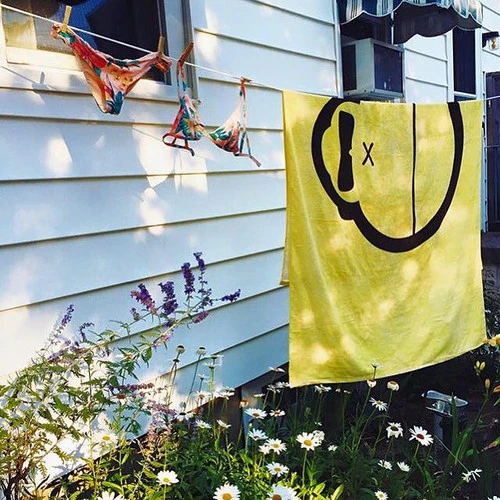 One side is a wicking terry towelling, best for absorbency, and a plush side – perfect for sitting on lying on ..or having a sneaky summertime nap.ย