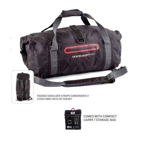 Waterproof Duffle Bag is a waterproof sealed seams, Multi-use duffle bag/backpack, Airtight 3-fold dry seal system, Ultra light weight durable fabric, Stashes, away in compact carry bag, Padded shoulder straps stash away into zip pocket