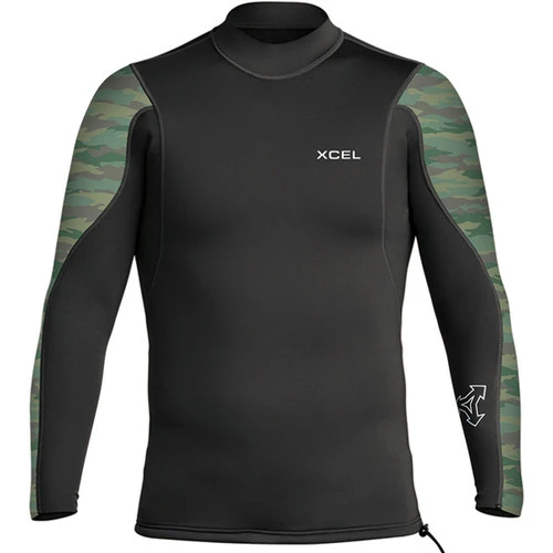 XCEL Axis 2:1mm Long Sleeve Wetsuit Top | Surfing Top | Vest | Surf Jacket | Black Green Camo